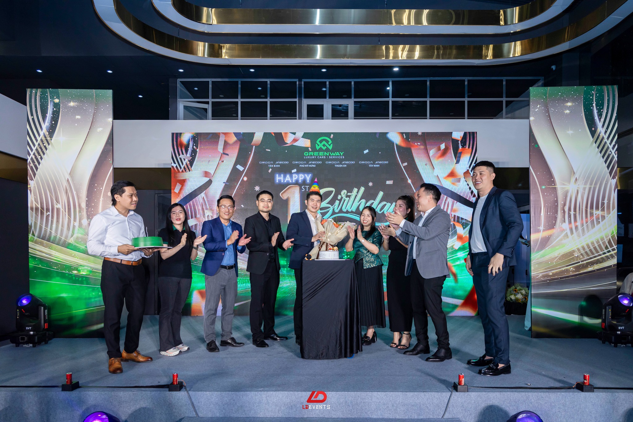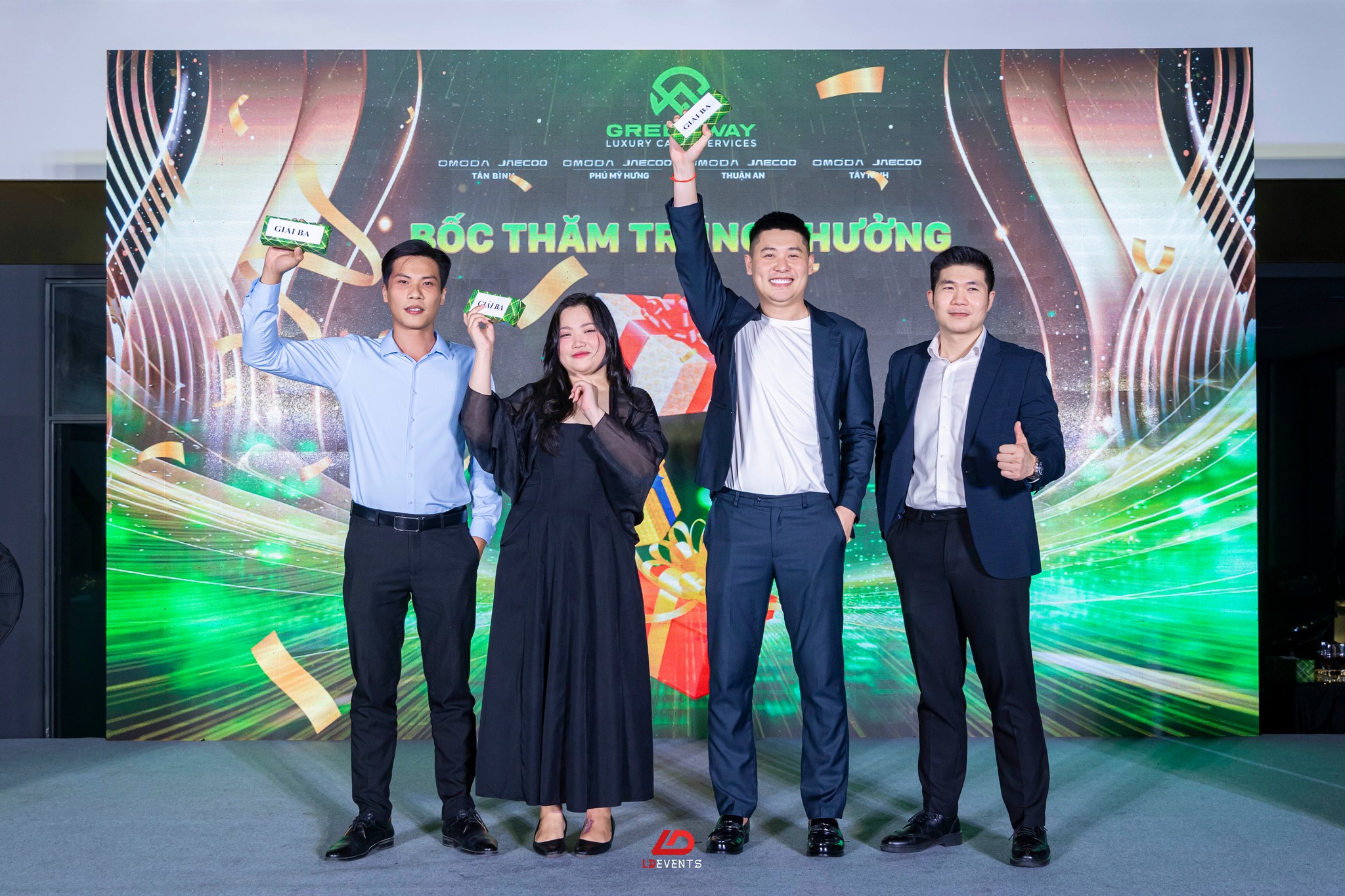Lấy cảm hứng từ tinh thần “Luxury – Đẳng cấp – Tiên phong”, LD Events đã phát triển concept chương trình mang màu sắc hiện đại, tinh tế nhưng vẫn giữ được sự ấm áp của một buổi tiệc gắn kết nội bộ. Không gian sự kiện được thiết kế nổi bật với hệ thống LED sân khấu ấn tượng, hiệu ứng ánh sáng cao cấp và khu vực check-in mang đậm dấu ấn GREENWAY LUXURY CAR. Mỗi chi tiết đều được tính toán kỹ lưỡng nhằm đảm bảo sự chỉn chu trong từng khoảnh khắc – từ phần vinh danh, phát biểu tổng kết đến các tiết mục giải trí và minigame khuấy động không khí.